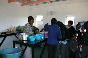 Often, these sometimes ‘forgotten’ children have to grow up with only one in some cases no parents with which to be guided, to be loved or even just to be fed. Many times on visits to these schools, we find that on Monday morning, many of these children are restless and are unable to concentrate, however after a school meal, there is a marked improvement and a return to some form of normality. Simply, this is due to lack of nourishment, and as a result one of our key focus areas, is to ensure that every school in the area, has access to bulk foods, and has the ability both from a cook perspective, and also a facility in which to prepare and cook these meals. Basic foods are supplied to all of the schools and obviously these require preparation and cooking. We observed that three of the ten schools do not have kitchens. These schools prepared the food over an open fire outside on the school grounds. Unfortunately, should there be rain, snow or even strong winds, because the preparation was over an open fire, it became impossible to feed these learners, and they would go home hungry. Bearing in mind that a number of these children have lost one or both parents, there was no guarantee that a meal would be waiting for them at home either. It’s difficult to imagine how hungry these children must have been, when for instance rain set in for a week or more! As a result of these issues, it was decided to start building kitchens at the schools, where preparation of meals could be completed irrespective of weather conditions. With the help of our project partners, we built three kitchens one at Sand River Primary School, one at Eboyeni Primary School and one at Remington Primary School which now guarantees the children at least one hot meal per day.